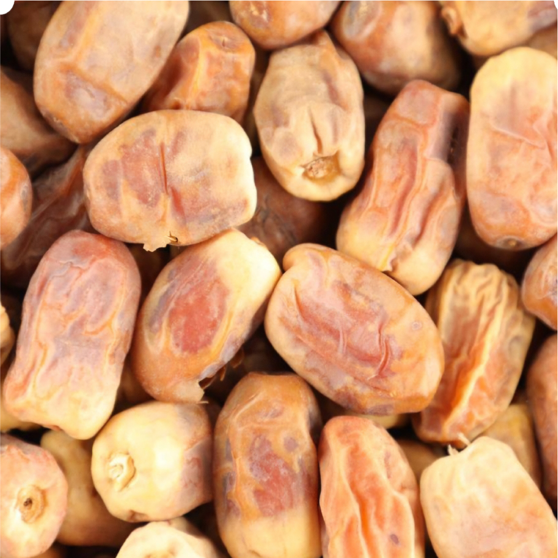 Es kann eine großartige Alternative zu Zucker in Ihren Gerichten oder Mahlzeiten sein, insbesondere für ältere Menschen. Es hilft, das Immunsystem zu stärken, den Blutdruck zu regulieren und die Gesundheit von Herz und Kreislauf zu fördern. Es trägt auch zur Verbesserung der Verdauungsgesundheit und zur Förderung der Knochen- und Zahngesundheit bei. Diese Art von Datteln zeichnet sich durch ihren süßen Geschmack und viele gesundheitliche Vorteile aus. Diese Art wird in vielen arabischen Ländern angebaut. Wie Ägypten, Saudi-Arabien und den Vereinigten Arabischen Emiraten. Diese Art ist auch eine der wunderbaren und köstlichen Früchte. Das bereichert Ihre Erfahrung mit ihr zusätzlich zu ihrem reichen und vielen Nutzen.